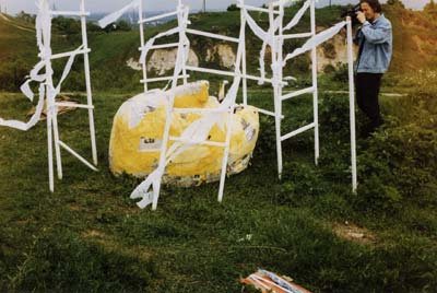 1998: "Giddy-brained Entertainment". Deliverance of spirit on the verge between the same East and West; parade of mobiles; performance; happening; installations; meditation in the wind; and as the result – fireworks and labyrinth; and the same ritual burning after it (from fire came – to fire gone).